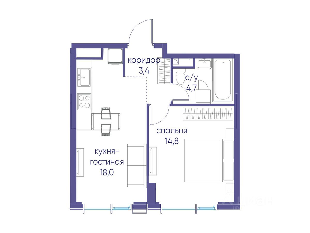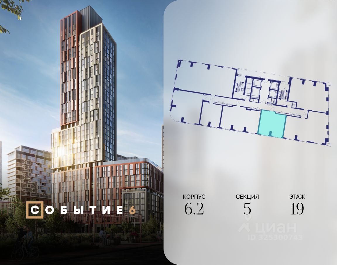 Продаётся 1-комнатная квартира от застройщика: общая площадь 40.90 м², жилая 14.80 м², кухня 18.00 м², 18-й этаж, жилой квартал "Событие-6", корпус 2 (секция 5) Срок сдачи: 1 квартал 2029 года.