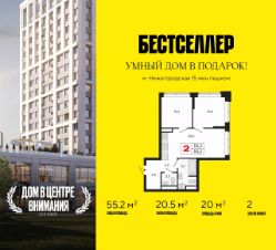 Продаётся 2-комнатная квартира на 14 этаже 29 - этажного дома (Корпус 1). Общая площадь: 55.2. Высота потолков от 2.87 м. "Бестселлер" — жилой комплекс комфорт-класса на юго-востоке Москвы, в окружении зеленых зон и с продуманной приватной атмосферой. Комплекс включает две башни на 16 и 29 этажей, объединенные стилобатом с lounge-пространствами. Идеальный баланс уединения и удобства городской жизни.