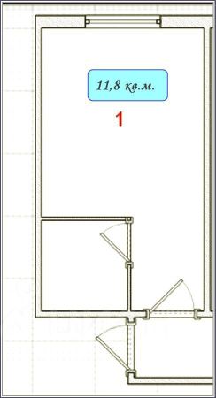 Площадь студии 11.8 кв.м.. Совмещенный санузел. Существующая в студии мокрая точка. Устанавливается новая входная металлическая дверь. Счетчики. В коридоре чистовой ремонт под ключ.