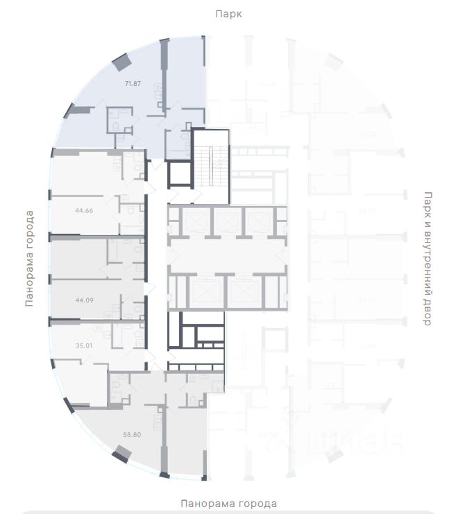 Высота потолков — 3,2 метра, большие окна в пол. В квартирах предусмотрены инженерные решения для акустического комфорта и чистый воздух благодаря близости парка и современным системам вентиляции.