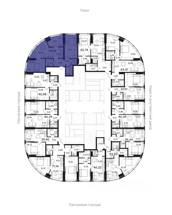 Высота потолков — 3,2 метра, большие окна в пол. В квартирах предусмотрены инженерные решения для акустического комфорта и чистый воздух благодаря близости парка и современным системам вентиляции.