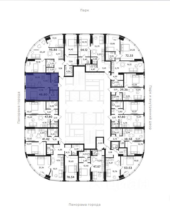 Высота потолков — 3,2 метра, большие окна в пол. В квартирах предусмотрены инженерные решения для акустического комфорта и чистый воздух благодаря близости парка и современным системам вентиляции.