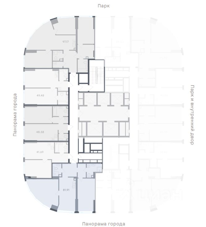 Высота потолков — 3,2 метра, большие окна в пол. В квартирах предусмотрены инженерные решения для акустического комфорта и чистый воздух благодаря близости парка и современным системам вентиляции.