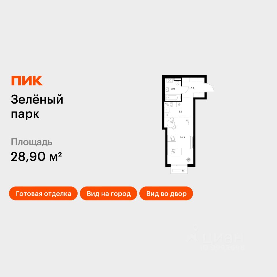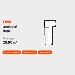 Продаётся квартира-студия площадью 28,9 кв.м на 7 этаже 13 этажного дома (Корпус 5.3, Секция 3) проекта ПИК Зелёный парк. Светлый просторный подъезд на уровне земли, функциональная планировка, большие окна, c отделкой.