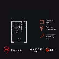 Продаётся квартира-студия номер 924 общей площадью 32.7 кв.м. на 24-м этаже 57 этажного здания. Отделка Whitebox. Цена с учётом скидки.