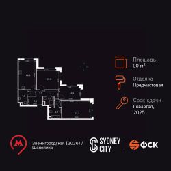 Продаётся 3-к квартира номер 466 общей площадью 90.8 кв.м. на 30-м этаже 44 этажного здания. Отделка Whitebox. Цена с учётом скидки.