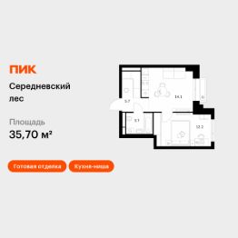Продаётся 1-комн. квартира площадью 35,7 кв.м на 13 этаже 16 этажного дома (Корпус 2.1.1, Секция 1) проекта ПИК Середневский лес. Светлый просторный подъезд на уровне земли, функциональная планировка, большие окна, c отделкой.