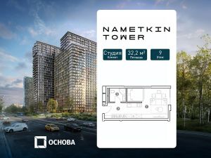 Продается студия площадью 32.2 кв.м. на 9-м этаже 29 этажного дома в "NAMETKIN TOWER" от ГК ОСНОВА.
