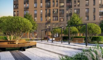 В каждой входной группе будет располагаться комфортабельная зона ожидания с возможностью зарядить электронные устройства, почтовые ящики, колясочная, акцентные пуфы и столик.