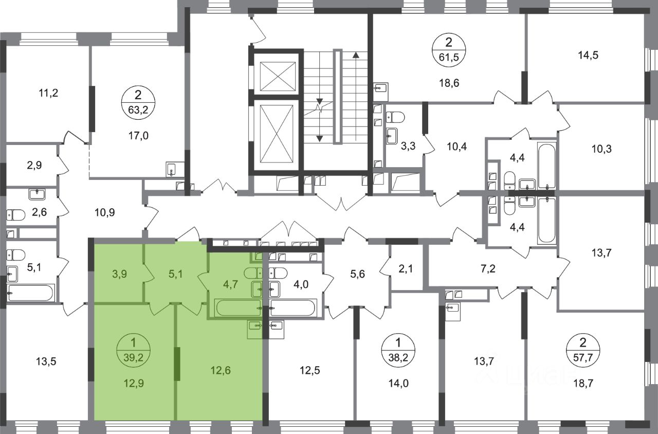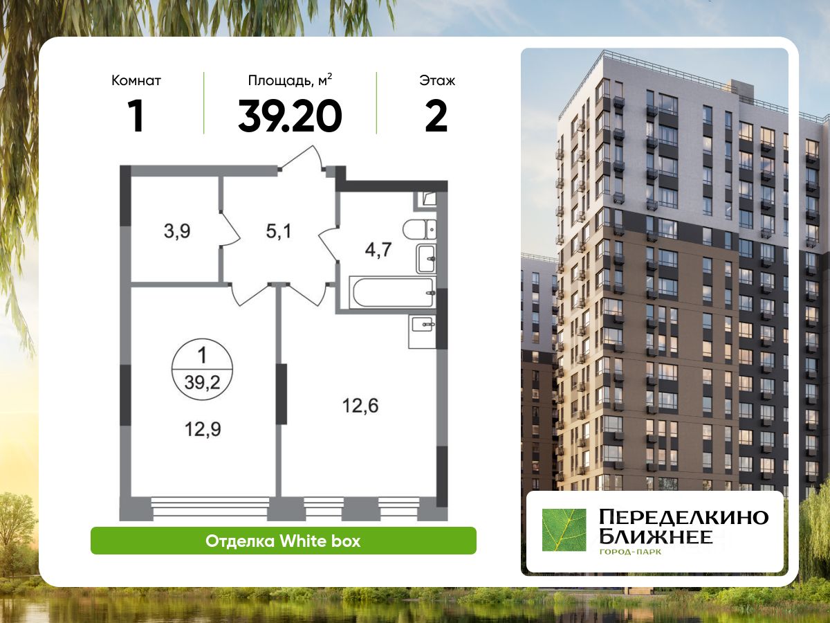 Общая площадь квартиры - 39,2 кв. м, этаж 2 из 17.