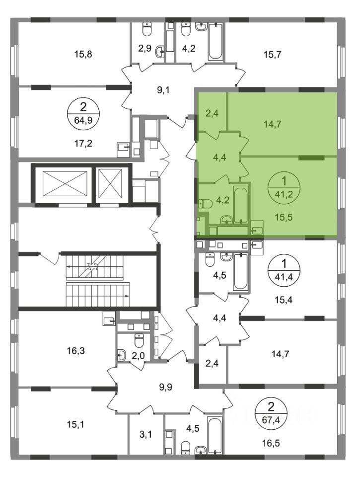 Общая площадь квартиры - 41,2 кв. м, этаж 5 из 17.