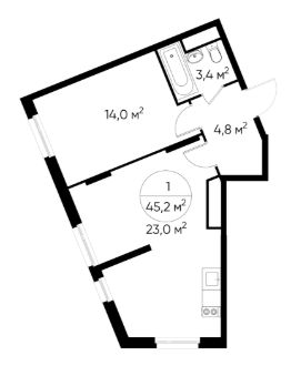 Общая площадь квартиры - 45,2 кв. м, этаж 5 из 17.