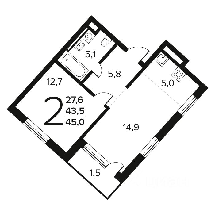 Продаётся 2-комнатная квартира в строящемся доме (Корпус 6/4), срок сдачи: IV-кв. 2026, общей площадью 45 кв.м., на 2 этаже. Микрорайон Заречный расположен в природном окружении рядом с лесным массивом в живописной локации — на изгибе реки Десна. Квартал у реки открывает редкую возможность комбинировать городскую жизнь с тишиной и спокойствием природы. В 3 минутах ходьбы открыт парк "Андерсен" .