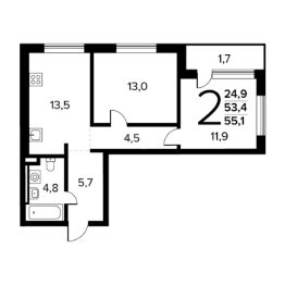 Продаётся 2-комнатная квартира в строящемся доме (Корпус 6/7), срок сдачи: IV-кв. 2026, общей площадью 55.1 кв.м., на 2 этаже. Микрорайон Заречный расположен в природном окружении рядом с лесным массивом в живописной локации — на изгибе реки Десна. Квартал у реки открывает редкую возможность комбинировать городскую жизнь с тишиной и спокойствием природы. В 3 минутах ходьбы открыт парк "Андерсен" .
