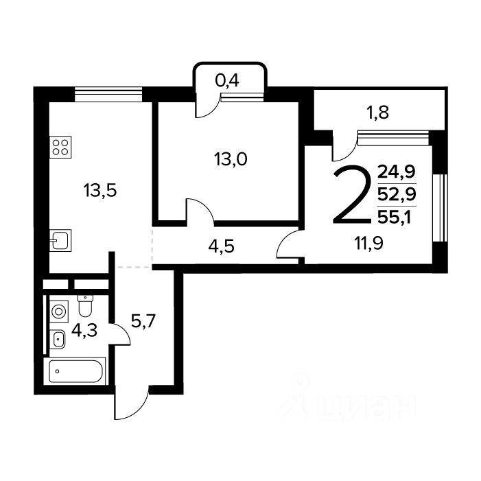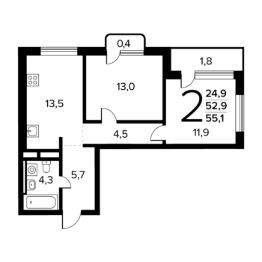 Продаётся 2-комнатная квартира в строящемся доме (Корпус 6/8), срок сдачи: IV-кв. 2026, общей площадью 55.1 кв.м., на 13 этаже. Микрорайон Заречный расположен в природном окружении рядом с лесным массивом в живописной локации — на изгибе реки Десна. Квартал у реки открывает редкую возможность комбинировать городскую жизнь с тишиной и спокойствием природы. В 3 минутах ходьбы открыт парк "Андерсен" .