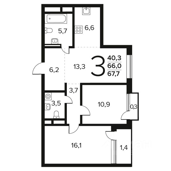 Продаётся 3-комнатная квартира в строящемся доме (Корпус 6/2), срок сдачи: IV-кв. 2026, общей площадью 67.7 кв.м., на 11 этаже. Микрорайон Заречный расположен в природном окружении рядом с лесным массивом в живописной локации — на изгибе реки Десна. Квартал у реки открывает редкую возможность комбинировать городскую жизнь с тишиной и спокойствием природы. В 3 минутах ходьбы открыт парк "Андерсен" .