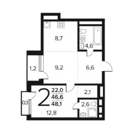 Продаётся 2-комнатная квартира в строящемся доме (Корпус 6/3), срок сдачи: IV-кв. 2026, общей площадью 48.1 кв.м., на 9 этаже. Микрорайон Заречный расположен в природном окружении рядом с лесным массивом в живописной локации — на изгибе реки Десна. Квартал у реки открывает редкую возможность комбинировать городскую жизнь с тишиной и спокойствием природы. В 3 минутах ходьбы открыт парк "Андерсен" .