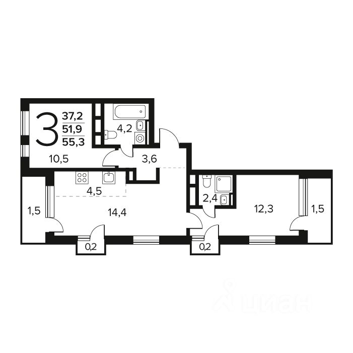 Продаётся 3-комнатная квартира в строящемся доме (Корпус 6/3), срок сдачи: IV-кв. 2026, общей площадью 55.3 кв.м., на 9 этаже. Микрорайон Заречный расположен в природном окружении рядом с лесным массивом в живописной локации — на изгибе реки Десна. Квартал у реки открывает редкую возможность комбинировать городскую жизнь с тишиной и спокойствием природы. В 3 минутах ходьбы открыт парк "Андерсен" .