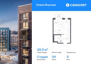 Строим кварталы для жизни с заботой о будущем. Предлагается квартира студия комфорт-класса 28,46 кв.м в корпусе 34 на 3 этаже, в ЖК "Новое Внуково"