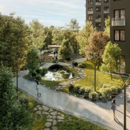 Чтобы отдохнуть от суеты города, достаточно выйти во двор: здесь раскинулся настоящий лес с живописными пейзажами. В тени деревьев жителей ждут пруд с мостиком и беседкой на берегу, тихие прогулочные аллеи, спортивная площадка и зоны для занятий йогой и бадминтоном на свежем воздухе.