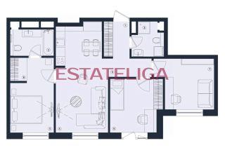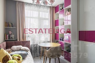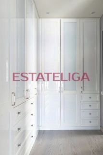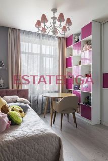 Функциональная планировка апартамента: просторная кухня-гостиная, мастер спальня со своим санузлом, детская комната, кабинет, первый санузел с ванной в спальне, второй санузел с ванной, просторный холл. Много мест для хранения - встроенный шкаф для верхней одежды и обуви в коридоре и встроенный шкаф в спальне. Детская и спальня разделены между собой кухней-гостиной.