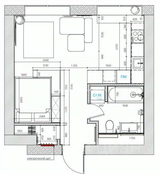 Планировка квартиры максимально продумана и функциональна: большая кухня-гостиная с двумя панорамными окнами, изолированная спальня, гардеробная и ванная комната.