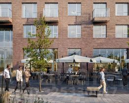 Архитекторы вдохновились локацией проекта: природные оттенки и активная пластика корпусов напоминают рельефные выступы на берегу, а окна отражают водную гладь, визуально объединяя дома с природой.
