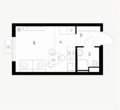 Студия общей площадью 20м2 с отделкой:
