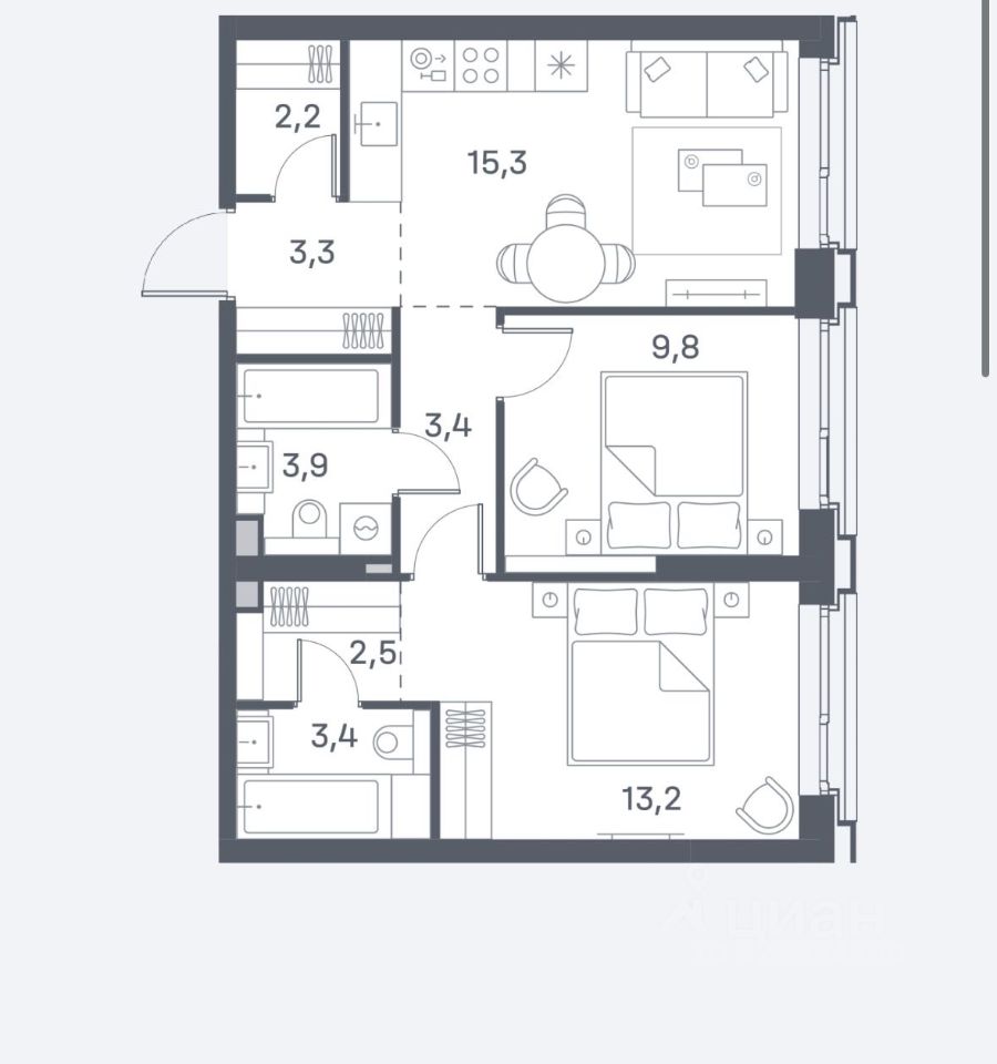 — 2 санузла,