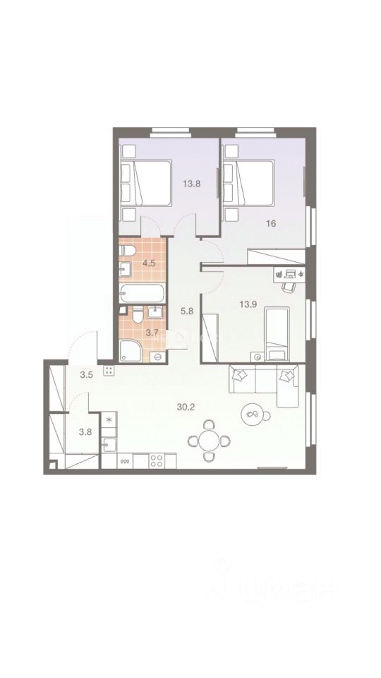 • Три уютные спальни, включая мастер-спальню — для полноценного отдыха.