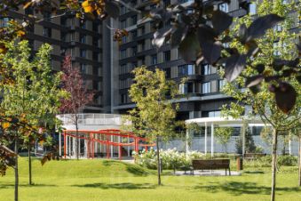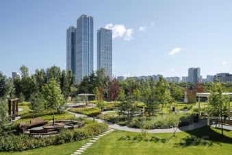 Двор - эксклюзивный пейзажный парк с приватной атмосферой. Пространство зонировано для тихого отдыха, общения, занятий спортом, детских игр. Между особняками созданы крытые лаунж-зоны для общения, отдыха и работы на свежем воздухе. Закрытая территория обеспечена круглосуточной охраной, системами контроля доступа и видеонаблюдения.