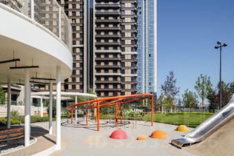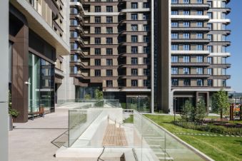 Парадная входная группа - двусветное пространство с потолками до 8,7 м и стильным интерьер-дизайном, выполненным по авторскому проекту. Лобби-клуб для жителей включает в себя детский игровой зал, фитнес-рум, приватный лаунж и места для деловых встреч.