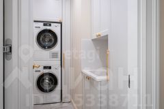 Существенным преимуществом является наличие постирочной, которую при необходимости можно легко преобразовать в дополнительный гостевой санузел. Ключевой особенностью интерьера выступает высокая детализация и ручная работа: мозаичные покрытия, выполненная на заказ кухня из массива дерева со столешницей из натурального камня, а также оригинальные предметы искусства.