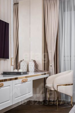 Объект отличается продуманной свободной планировкой, включающей объединенную кухню-гостиную, две изолированные спальни, кабинет, гардеробную и санузел.