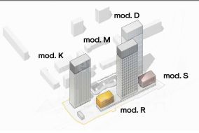 Mod жилой комплекс премиум-класса в историческом районе Москвы, состоящий из двух клубных домов (9 этажей) и трёх разноэтажных башен (44-55 этажей). Закрытая территория, продуманное благоустройство, эксплуатируемые кровли стилобата, образовательный центр с детским садом создают приватное пространство для тихой семейной жизни, а городская площадь с фонтанами, ресторан, супермаркет, коммерческая инфраструктура на первых этажах. Mod.C - 44 этажа, Mod.D, Mod.M - 55 этажей