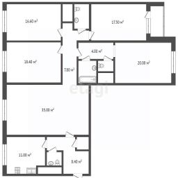 Простор и свет. Большие окна. Удачная изолированная планировка: четыре отдельные спальни и большая объединенная гостиная — место для сбора всей семьи. Огромную гостиную делит на две части дверь-купе, которая легко скрывается в стене. Кухня имеет кладовку и санузел. Из зала и спален открывается живописный во двор.