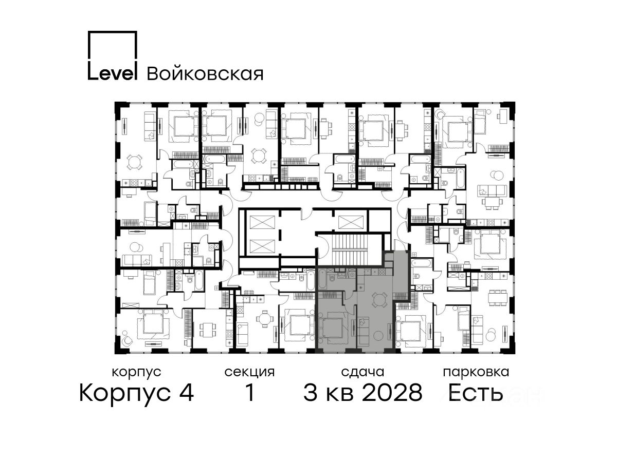 Цена указана с учётом скидки при 100%-й оплате, несубсидированной ипотеке, рассрочке (кроме программы "Рассрочка 0%"). Продается 1-комнатная квартира площадью 48.40 кв. м с отделкой. Квартира находится на 4 этаже 26-этажного корпуса 4, в новом жилом комплексе бизнес-класса Level Войковская, расположенном рядом с живописным заповедником "Покровское-Стрешнево" (застройщик - компания Level Group/Левел групп). Прекрасная транспортная доступность - 7 мин. пешком до станции МЦК "Балтийская"; - 15 мин. пешком до станции метро "Войковская"; - 8 мин. на машине до ТТК; - 15 мин. на машине до центра Москвы; - 20 мин. на машине до Москва-Сити. Продуманный архитектурный проект - стильная архитектура от мастерской Фефелова В. В.; - панорамные виды на парки, Химкинское водохранилище и Останкинскую башню; - лобби с высотой потолков до 6,45 метров; - более 20 видов планировочных решений, включая редкие форматы квартир с террасой и увеличенной высотой потолков до 5,42 метров; - 2 варианта дизайнерской отделки в корпусе 4, предлагаются как дополнительная опция к отделке white box: стиль Modern в светлых холодных тонах и стиль Classic в нейтральной бежевой гамме. Квартиры в корпусах 3 и 5 сдаются без отделки. Расположение Level Войковская строится в престижном Северном округе Москвы. Развитая инфраструктура и живописная природа переплетаются в единый ансамбль, столь значимый для комфортной жизни. Войковский район окружают парки и набережные. В шаговой доступности - парк "Покровское-Стрешнево", не более 15-ти минут на велосипеде занимает путь до Тимирязевского парка и 9-ти минут до парка усадьбы Михалково. Рядом более 60 школ, 75 дошкольных учреждений, 17 государственных и 6 частных вузов, 25 супермаркетов, 4 торговых центра, среди которых ТЦ "Метрополис" и ТЦ "Авиапарк". Внутренняя инфраструктура На территории жилого комплекса предусмотрены коммерческие помещения: кафе, ресторан, пекарня и другие сервисы откроются на первых этажах корпусов. Для жителей будет доступен отапливаемый подземный паркинг на 244 машино-места с доступом с любого этажа на лифте. На территории паркинга будет расположено 125 кладовых помещений для хранения сезонного инвентаря. Лобби и благоустройство Дизайн лобби Level Войковская создан совместно с бюро BLANK. Это уютные гостиные, где хочется задержаться. Теплая цветовая гамма, ресепшен, зоны ожидания, лапомойки и гостевые санузлы - каждая деталь превращает лобби в комфортное продолжение вашего дома. 1,15 га площади в первых двух этапах строительства отведено под приватный внутренний двор, который спроектирован совместно с бюро "Правда". Детские площадки для всех возрастов, спортивные пространства для йоги, воркаута и петанка, уютные зоны для тихого отдыха или работы. Здесь утро начинается с вдохновения, а вечер наполнен приятными моментами. Лифты Комфортное перемещение внутри жилого комплекса будут обеспечивать надёжные лифты с доступом в паркинг с жилых этажей. В каждом корпусе предусмотрено по 3 грузопассажирских лифта.