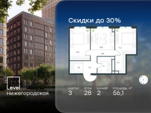 В активно развивающемся районе на юго-востоке столицы продается 2-комнатная квартира площадью 56,1 кв.м без отделки.. Квартира расположена на 28 этаже 37-этажного этажного корпуса 3 в жилом комплексе комфорт-класса Level Нижегородская (компания Level Group/Левел групп).