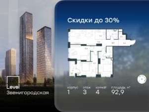 В жилом квартале продаётся 4-комнатная квартира площадью 92.90 кв.м white box. Квартира расположена на 3 этаже 48 этажного корпуса 1 в жилом комплексе комфорт класса Level Звенигородская (компания Level Group/Левел групп).