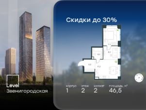 В жилом квартале продаётся 2-комнатная квартира площадью 46.50 кв.м white box. Квартира расположена на 2 этаже 48 этажного корпуса 1 в жилом комплексе комфорт класса Level Звенигородская (компания Level Group/Левел групп).