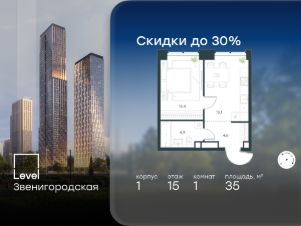 В жилом квартале продаётся 1-комнатная квартира площадью 35.00 кв.м white box. Квартира расположена на 15 этаже 48 этажного корпуса 1 в жилом комплексе комфорт класса Level Звенигородская (компания Level Group/Левел групп).