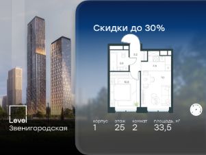 В жилом квартале продаётся 2-комнатная квартира площадью 33.50 кв.м white box. Квартира расположена на 25 этаже 48 этажного корпуса 1 в жилом комплексе комфорт класса Level Звенигородская (компания Level Group/Левел групп).