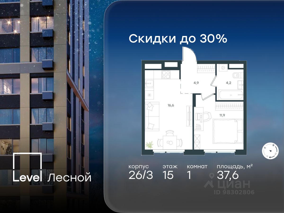 В районе, утопающем в густой зелени лесов, многочисленных парков и скверов, продаётся 1-комнатная квартира площадью 37.60 кв.м без отделки. Квартира расположена на 15 этаже в жилом комплексе комфорт-класса Level Лесной (компания Level Group/Левел групп).