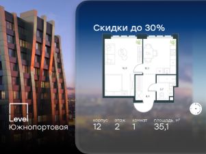 В северной части района Печатники продается 1-комнатная квартира площадью 35.10 кв.м без отделки. Квартира расположена на 2 этаже 20-этажного корпуса 12 в жилом комплексе комфорт-класса Level Южнопортовая (компания Level Group/Левел групп).