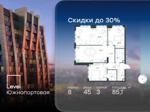 В северной части района Печатники продается 3-комнатная квартира площадью 85.10 кв.м без отделки. Квартира расположена на 45 этаже 49-этажного корпуса 8 в жилом комплексе комфорт-класса Level Южнопортовая (компания Level Group/Левел групп).