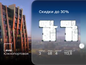 В северной части района Печатники продается 4-комнатная квартира площадью 113.80 кв.м без отделки. Квартира расположена на 68 этаже 68-этажного корпуса 3 в жилом комплексе комфорт-класса Level Южнопортовая (компания Level Group/Левел групп).