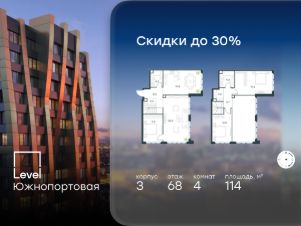 В северной части района Печатники продается 4-комнатная квартира площадью 114.00 кв.м без отделки. Квартира расположена на 68 этаже 68-этажного корпуса 3 в жилом комплексе комфорт-класса Level Южнопортовая (компания Level Group/Левел групп).