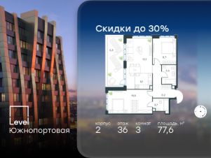 В северной части района Печатники продается 3-комнатная квартира площадью 77.60 кв.м без отделки. Квартира расположена на 36 этаже 47-этажного корпуса 2 в жилом комплексе комфорт-класса Level Южнопортовая (компания Level Group/Левел групп).