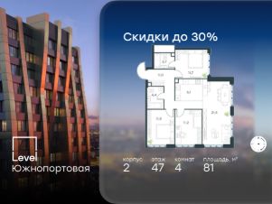 В северной части района Печатники продается 4-комнатная квартира площадью 81.00 кв.м без отделки. Квартира расположена на 47 этаже 47-этажного корпуса 2 в жилом комплексе комфорт-класса Level Южнопортовая (компания Level Group/Левел групп).