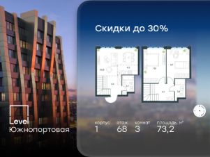 В северной части района Печатники продается 3-комнатная квартира площадью 73.20 кв.м без отделки. Квартира расположена на 68 этаже 69-этажного корпуса 1 в жилом комплексе комфорт-класса Level Южнопортовая (компания Level Group/Левел групп).
